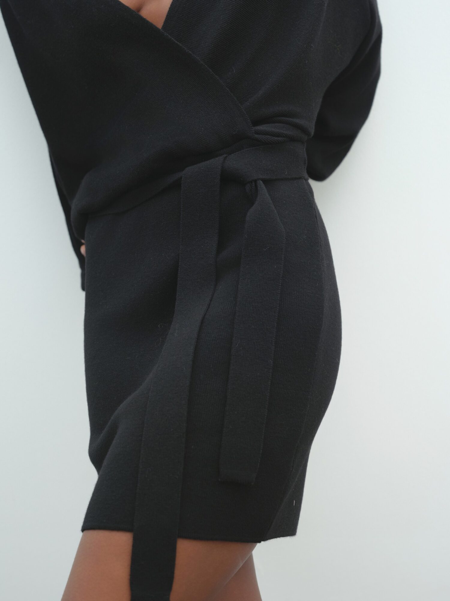 Abito corto in misto lana unisce eleganza e modernitร in un equilibrio perfetto. La texture compatta e morbida del tessuto accarezza la pelle, mentre la gonna aderente e il cinturino in vita scolpiscono la silhouette con grazia e femminilitร . Il profondo scollo a V, sia sul davanti che sul retro, svela con delicatezza la tua femminilitร , creando un contrasto armonioso con le maniche a palloncino, simbolo di romanticismo e carattere. Un capo dal design essenziale ma dโimpatto, ideale per occasioni speciali o serate dove il fascino si esprime con naturale eleganza. Abbinalo a dรฉcolletรฉ o stivali alti per creare un outfit serale raffinato e sensuale.