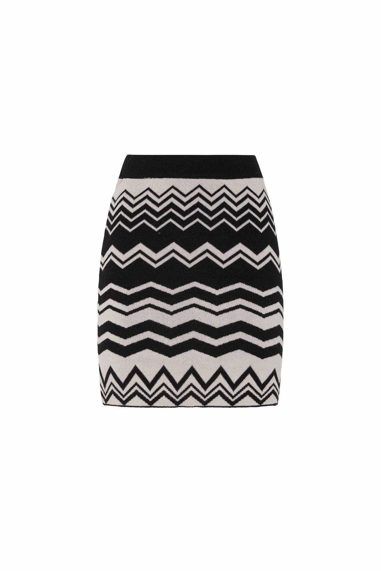 Akep Minigonna in Maglia con Motivo Zig Zag Nero e Bianco
