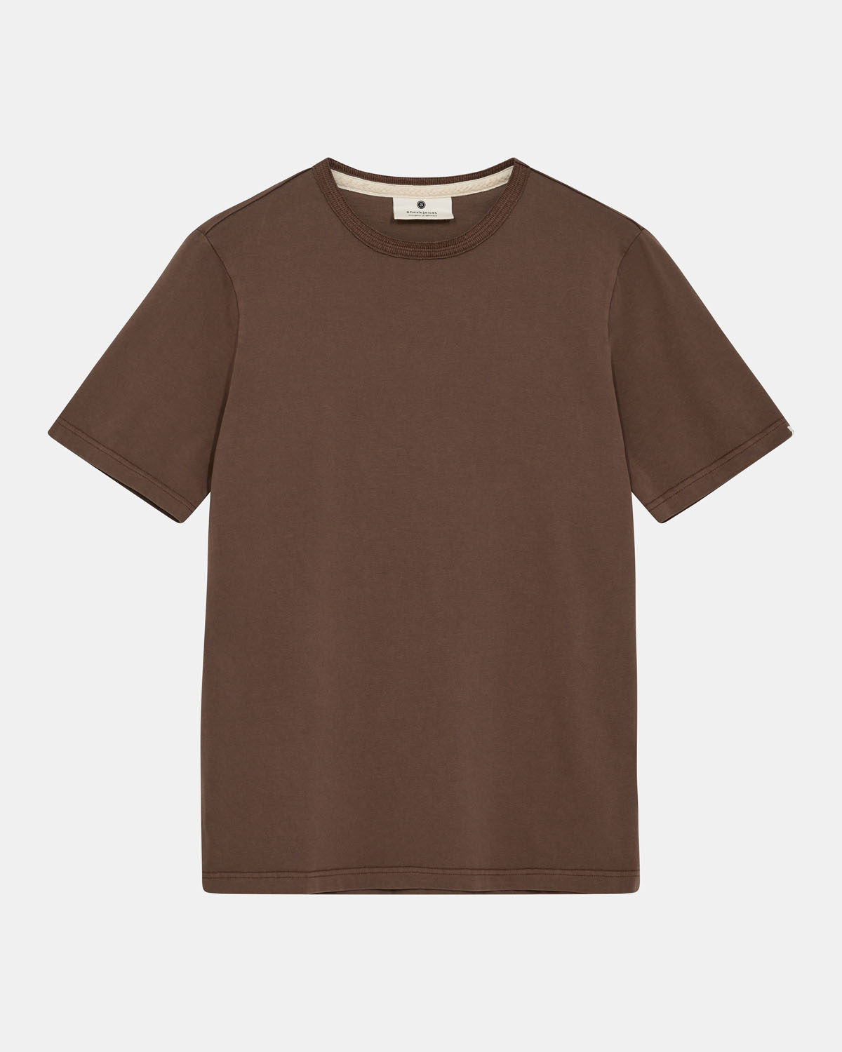 T-shirt color cioccolato in cotone morbido, con vestibilità comoda. Un capo basico, fresco e versatile, perfetto da indossare tutto l’anno.