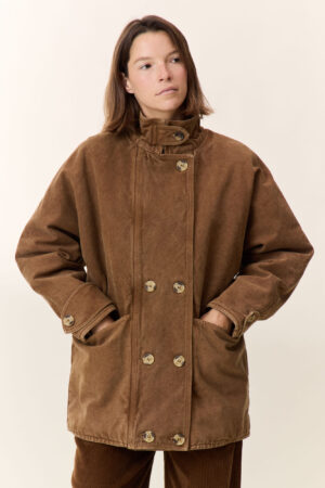 La giacca Viktor incarna a pieno lo spirito e lo stile di Leon & Harper. Realizzata in cotone con imbottitura interna, offre comoditร  e calore anche nelle giornate piรน fredde. Il taglio dritto oversize dona struttura e volume alla figura, mentre la chiusura doppiopetto arricchita da grandi bottoni, il collo alto regolabile e le maxi tasche mettono in evidenza una grande cura e attenzione ai dettagli che rendono questo capo ricercato, confortevole e non banale. Indossala sopra un abito in fantasia oppure con jeans e pantaloni ampi o a zampa per un look casual-chic dal sapore urban.