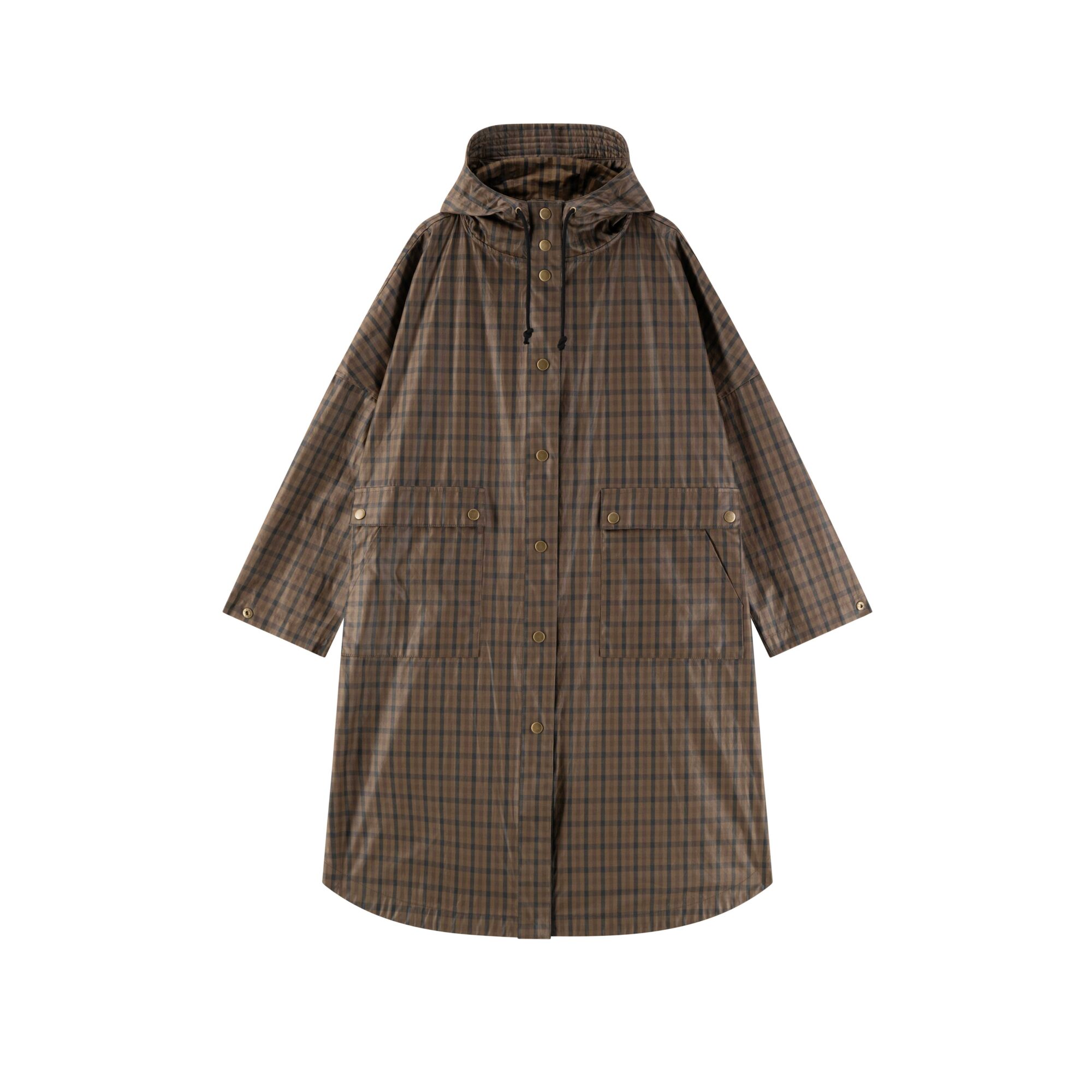Questo poncho rappresenta l’unione perfetta tra funzionalitร e originalitร . Realizzato in cotone rivestito, รจ ideale per le giornate di pioggia grazie alla presenza del cappuccio regolabile con coulisse e alla lunghezza fino a metร polpaccio che protegge e ripara le gambe. La linea ampia e oversize avvolge il corpo con eleganza garantendo massima libertร nel movimento, mentre il motivo a quadri sui toni del marrone lo rende sofisticato e ricercato, ma del tutto informale.
