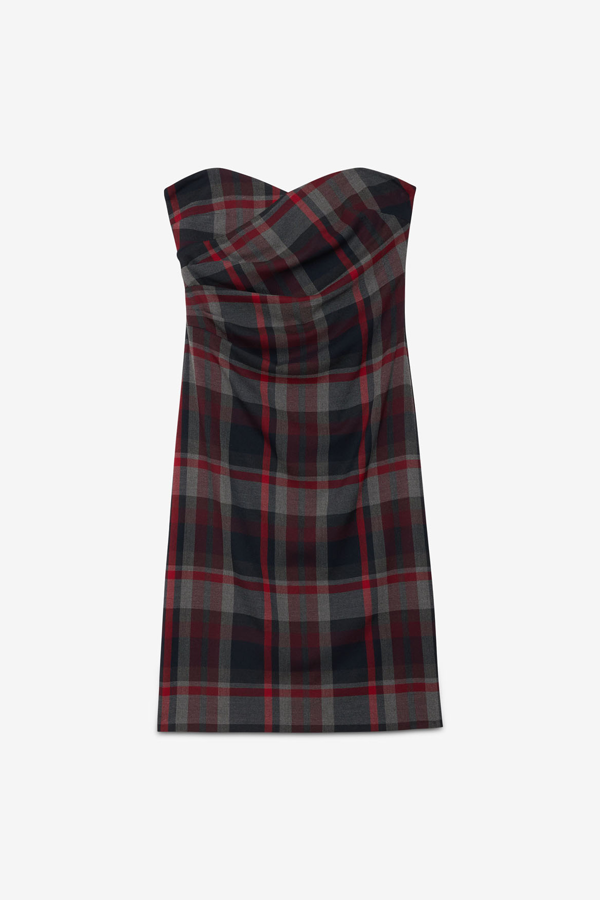 Un abito perfetto per raccontare una femminilitร  forte ma delicata, capace di sedurre con eleganza e stile. Questo abito tubino modello bustier senza spalline รจ realizzato con un tessuto elasticizzato in misto viscosa. Il motivo tartan nei raffinati toni del blu, grigio e rosso regala personalitร  e originalitร , mentre la silhouette aderente valorizza con delicatezza le forme. Il sottile scollo a cuore esalta il dรฉcolletรฉ con un tocco romantico, mentre i drappeggi strategici sul punto vita rendono la vestibilitร  piรน comoda e femminile. Lo spacco sul retro aggiunge un tocco seducente senza rinunciare allโ€™equilibrio, mentre la lunghezza al ginocchio lo rende ideale per creare outfit serali sofisticati e femminili, soprattutto se abbinato a collant e stivali dรฉcolletรฉ.