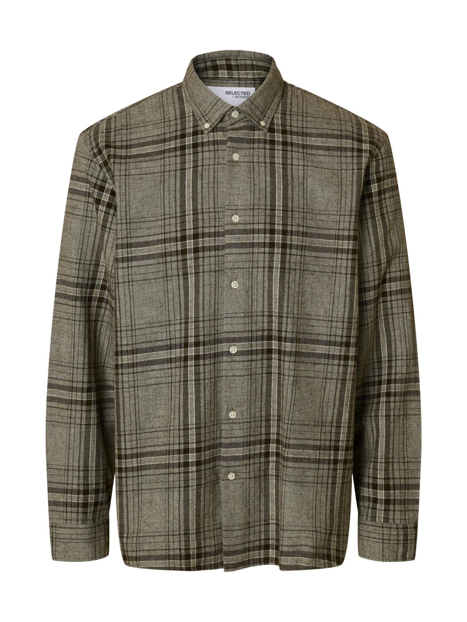 Camicia scozzese da uomo in cotone biologico, dal taglio regolare e realizzata in filato bicolore sui toni del marrone. Un capo dallo stile autentico e rilassato, perfetto per un look casual e naturale.